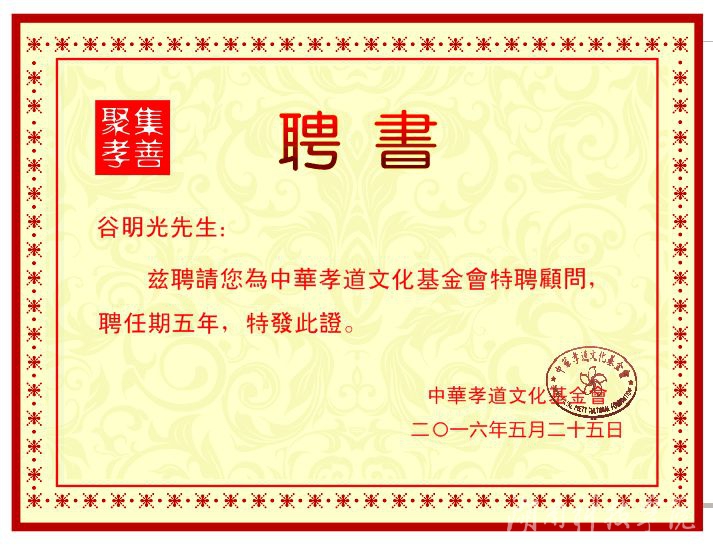 本网讯 近日,我校谷明光研究员被聘为“中华孝道文化基金会特聘顾问”、“北京市永州商会顾问”。