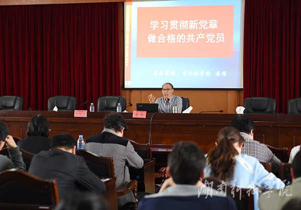本网讯(实习记者 刘献 摄影 何帅文)4月22日下午,湖南省委党校原副校长、现省委党校巡视员袁准为处干班作“两学一做”党章学习专题讲座。