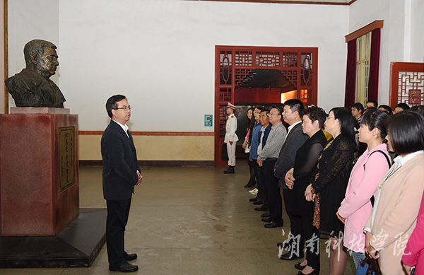 本网讯(通讯员 邓强 摄影 何帅文)4月20日,学校组织青年教师赴陶铸纪念馆开展红色教育活动,深切缅怀这位为民族解放事业和社会主义建设事业做出杰出贡献的无产阶级革命家。校党委书记陈弘,永州市政协副主席、祁阳县委书记魏湘江,祁阳县委副书记宋振平等领导参加活动。