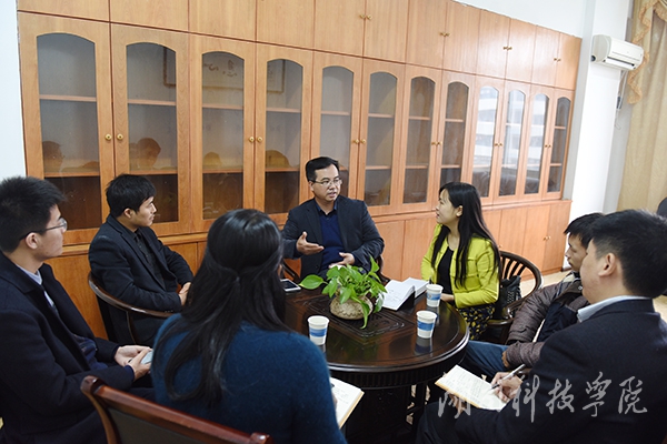 本网讯(实习记者 邓肖华) 3月21日,党委书记陈弘约见返校交流的毕业生江小梦、曹华和在校学习的龚继、李国琛等创业学子。