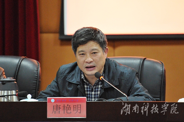 唐艳明作题为《全面落实立德树人根本任务 为学校转型发展提供强大思想保证和舆论支持》的专题报告。唐艳明指出,2015年来,学校宣传思想工作紧紧围绕立德树人这一根本任务,大力加强中国特色社会主义理论教育,牢牢把握高校意识形态工作领导权,积极培育和践行社会主义核心价值观,努力讲好身边人的故事,工作取得了一定成效。他从六个方面回顾了2015年宣传思想工作取得的成绩,一是牢牢把握高校意识形态工作领导权;二是大力加强中国特色社会主义理论教育;三是讲好校园身边的故事,壮大主流思想舆论;四是进一步加强社会主义核心价值观教育实践;五是加强网络思想政治工作;六是大力加强宣传思想队伍建设。他强调,加强和改进我校宣传思想工作和意识形态工作,是今后的一项重要的政治任务,我们必须要抓紧抓好。要继续深入贯彻落实党的十八大和十八届三中、四中、五中全会精神及习近平总书记系列重要讲话精神,紧紧围绕学校中心工作,以加强社会主义核心价值观建设为基础,以深化立德树人工程为重点,以推进大学文化建设为特色,以加强校内外新闻宣传为阵地,扎实做好宣传思想工作,为建设质量优良、特色鲜明的应用型大学,提供有力的思想保证、舆论支持和文化氛围。他在报告中强调要加强理论武装铸魂,全面落实立德树人根本任务;加强思想引领聚神,进一步巩固师生员工团结奋进的思想基础;加强舆论宣传誉名,进一步壮大主流思想舆论;加强大学文化建设凝心,全力推进文化传承创新;加强意识形态管理履责,牢牢把握意识形态领导权。