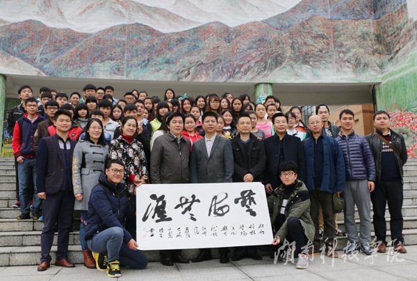 本网讯(通讯员 唐忠林)11月21日上午,美术与艺术设计学院邀请湖南省书法家协会副主席刘晓斌先生、衡铁书法家协会袁飞先生开展题为“中国书法——中国文化的精神”的讲座。校党委书记陈弘、副校长程智开来到现场,积极倡导中国文化精神,引导学廉倡廉爱廉。