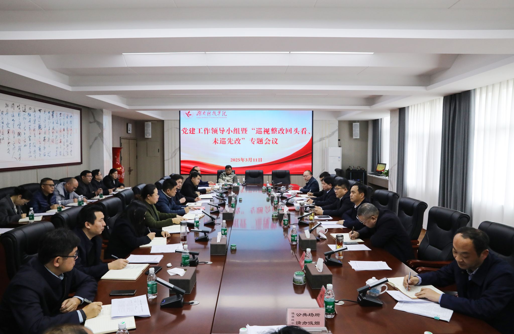 本网讯(记者 向薛峰 刘传意 摄影 谢志豪)3月11日,学校召开党的建设工作领导小组暨“巡视整改回头看、未巡先改”专题会议,全体党委委员、党的建设工作领导小组成员单位及有关部门负责人,各直属党组织书记参加会议,会议由党委副书记、校长黄创霞主持。