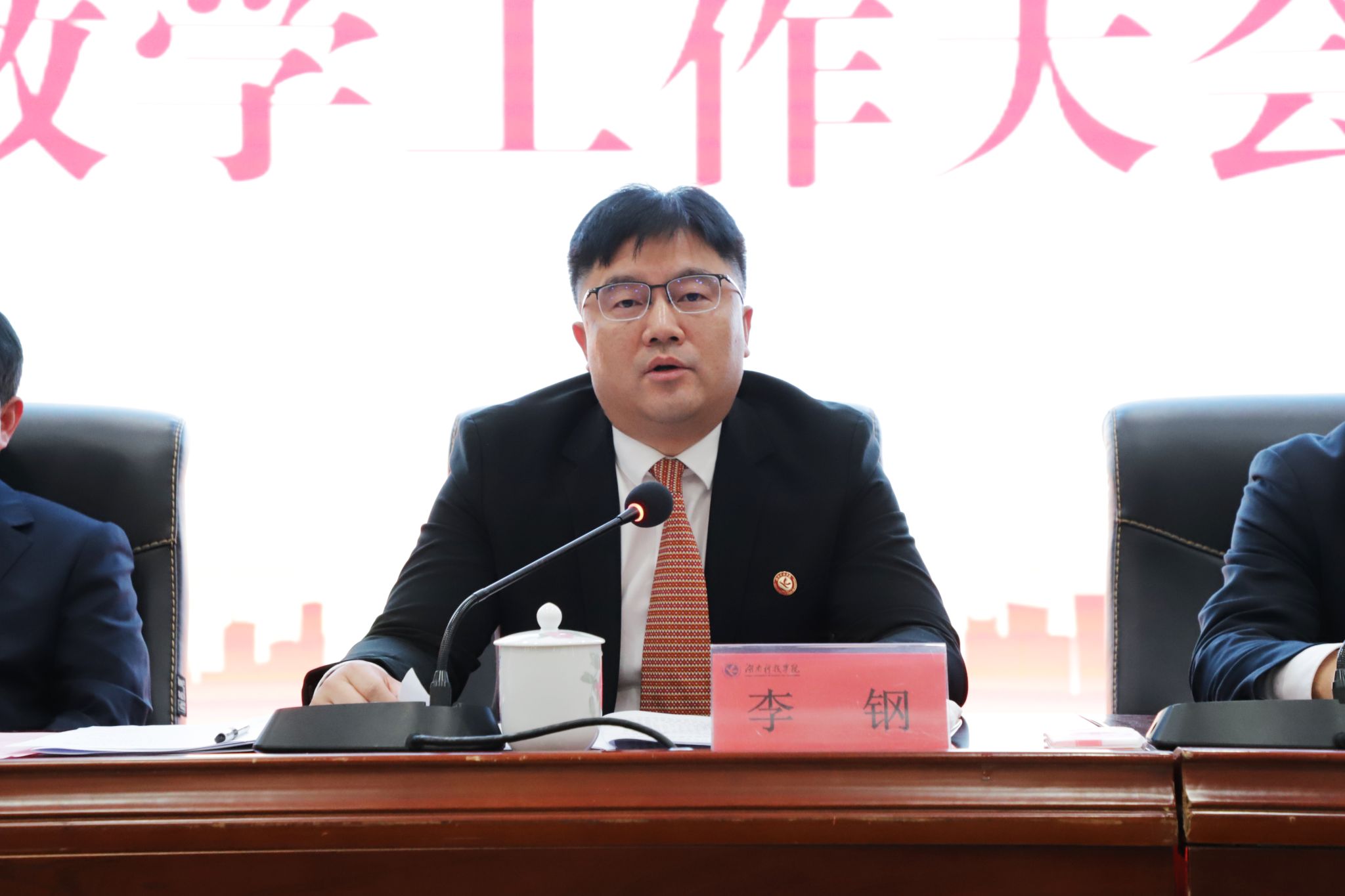 黄创霞发表题为《锚定“三高四新”使命 勇当教育强省先锋 以改革创新驱动学校教育教学工作高质量发展》的讲话。他就进一步加强学校教育教学工作提出了三点意见:一是把握发展大势,直面挑战谋发展。我们要学深悟透《教育强国建设规划纲要(2024—2035年)》《教育强省建设规划纲要(2025—2035年)》等重要纲领性文件,立足学校实际,进一步明确办学定位、厘清发展思路、深化发展共识、凝练优势学科、打造办学特色,实现高质量发展;二是聚焦“六个强化”,推动内涵式发展。重点推进“强化党建引领,筑牢教育高质量发展根基”“强化‘大思政课’建设,落实立德树人根本任务”“强化评估导向,夯实教学质量生命线”“强化学科建设,提升人才培养适配性”“强化产教融合,切实增强服务地方水平”“强化技术赋能,推动教育数字化转型”等六个方面的工作;三是做“四有”好老师,争当育人引路人。全体教师要“以德立身,争做师德表率”“以爱育人,甘当学生良师”“以研促教,勇立创新潮头”,打造一支师德高尚、业务精湛、结构合理、充满活力的高素质专业化教师队伍。