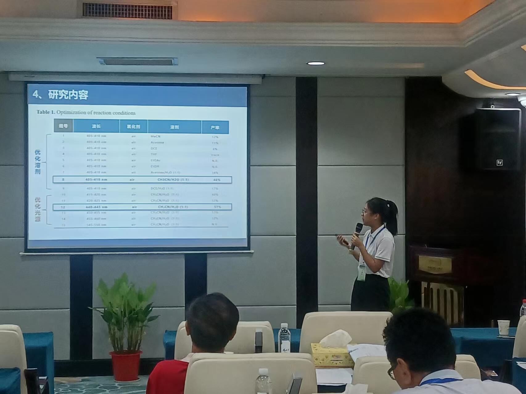 迈过文献难关,彭臻便跟随老师开始进一步探索课题,在研究一个三组分实验时,检测反应发现总有一个较浓的副产物点,通过查阅文献和老师以及团队成员后续的分析,惊喜地发现了一个崭新的课题。“我很喜欢思维碰撞的过程,大家一起交流探讨时总能发现自己的盲点,灵感和新的想法就会迸发。”