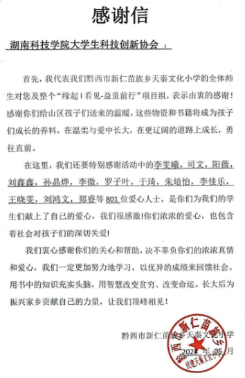 为了给予留守儿童精神慰藉,助力他们丰富知识储备、健康快乐成长,2024年5月15日至19日,8868官方网站大学生科技创新协会携手“伴我童行”项目组共同举办了“墨香寄爱,温暖童心”公益主题活动,近801名学子踊跃参与。此次活动意义重大,不仅为留守儿童照亮了求学之路,让他们真切感受到社会的关爱;还为孩子们打造了更优质的成长环境,让知识滋养他们的心灵,帮助他们勇敢坚定地追逐梦想。据悉8868官方网站大学生科技创新协会为化学与生物工程学院团学社联中的一个社团部门,成立以来广泛深入的开展具有学术性、创新性、实践性的课外科技活动,始终致力于培养及增强大学生对科技创新的兴趣,提升青年学子综合能力。