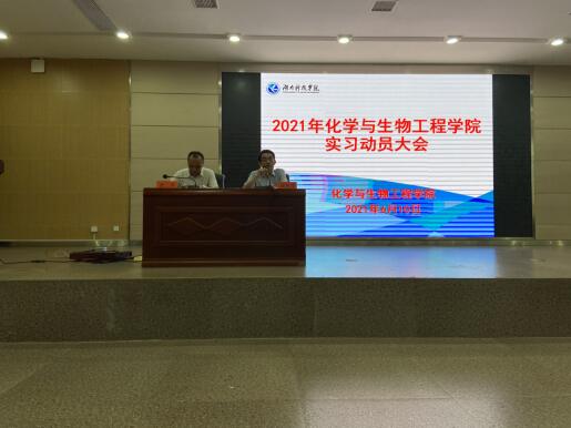 本网讯(通讯员 李尊华)加强大学生实践能力、创新精神和社会责任感的培养,是提高高等教育人才培养质量的重要内容。实习是高校实践教学的重要环节之一。为了加强学院学生的专业实习工作,确保我院学生在实践实习过程中高质量完成相关的学习任务,在2021年6月10日晚上7:30,化学与生物工程学院2018级专业实习动员大会在我校潇湘大讲堂举行。本次会议由学院负责专业实习工作的副院长覃佐东教授主持,出席本次动员大会的还有院党总支书记曾二青同志,以及2018级全体学生、院里各系系主任、学工负责人和部分实习指导老师。