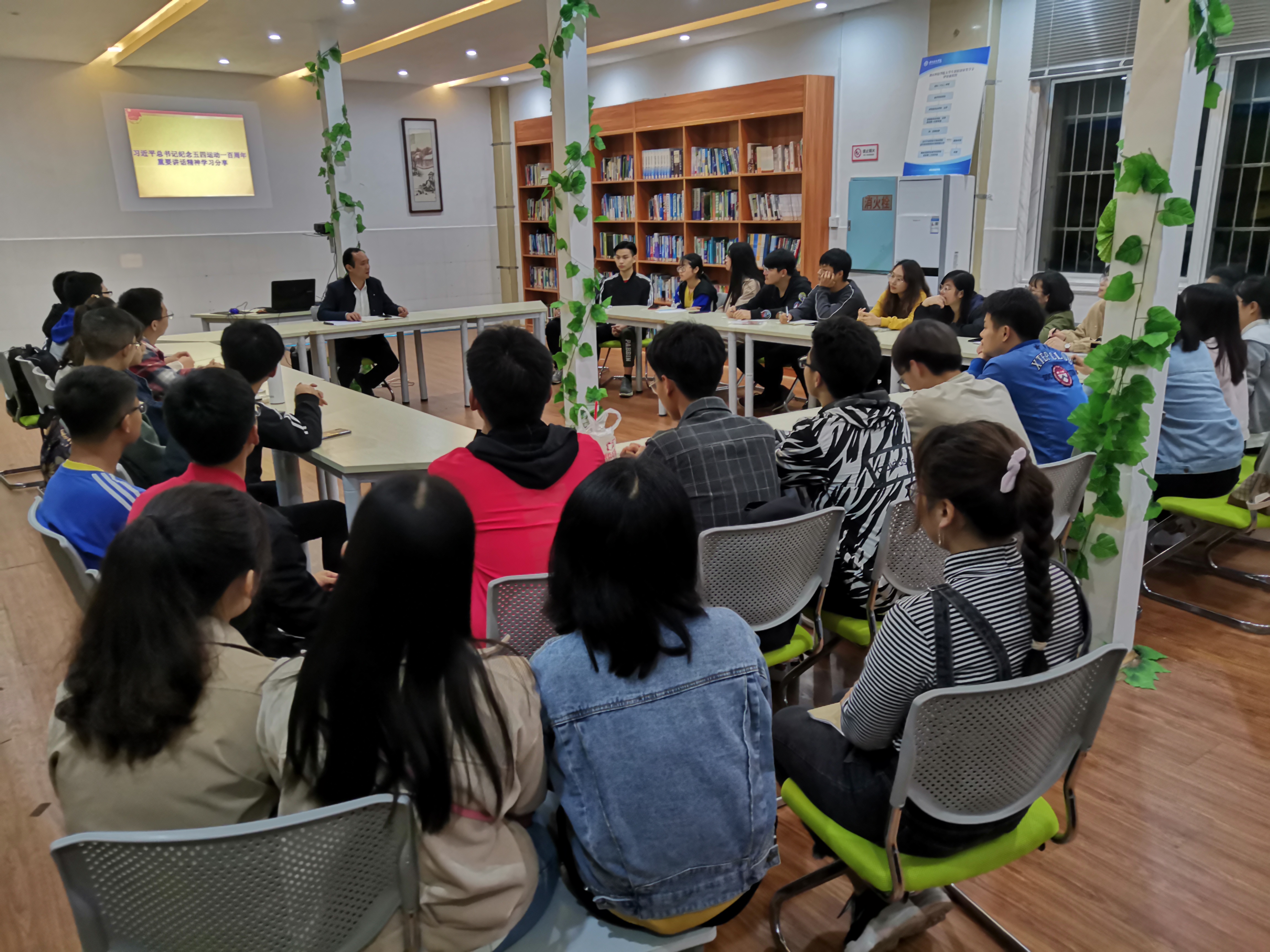 师生通过一个个五四运动的视频,回顾一百年前的光荣历史,曾二青还与同学们就五四精神的时代意义进行了深入探讨,不少团学干部踊跃发言,表示五四精神是时代民族之魂,作为当代大学生的我们应该自立自强,争做时代新青年,建功新时代。