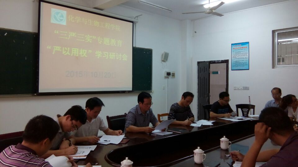 本网讯(通讯员 邓平洋)10月20日下午,化学与生物工程学院在逸夫楼417会议室召开“三严三实”严以用权专题研讨会。该院党总支书记赵雨云主持研讨,各党政领导、教学系部主任和教务办、学工办、综合办负责人参与讨论。