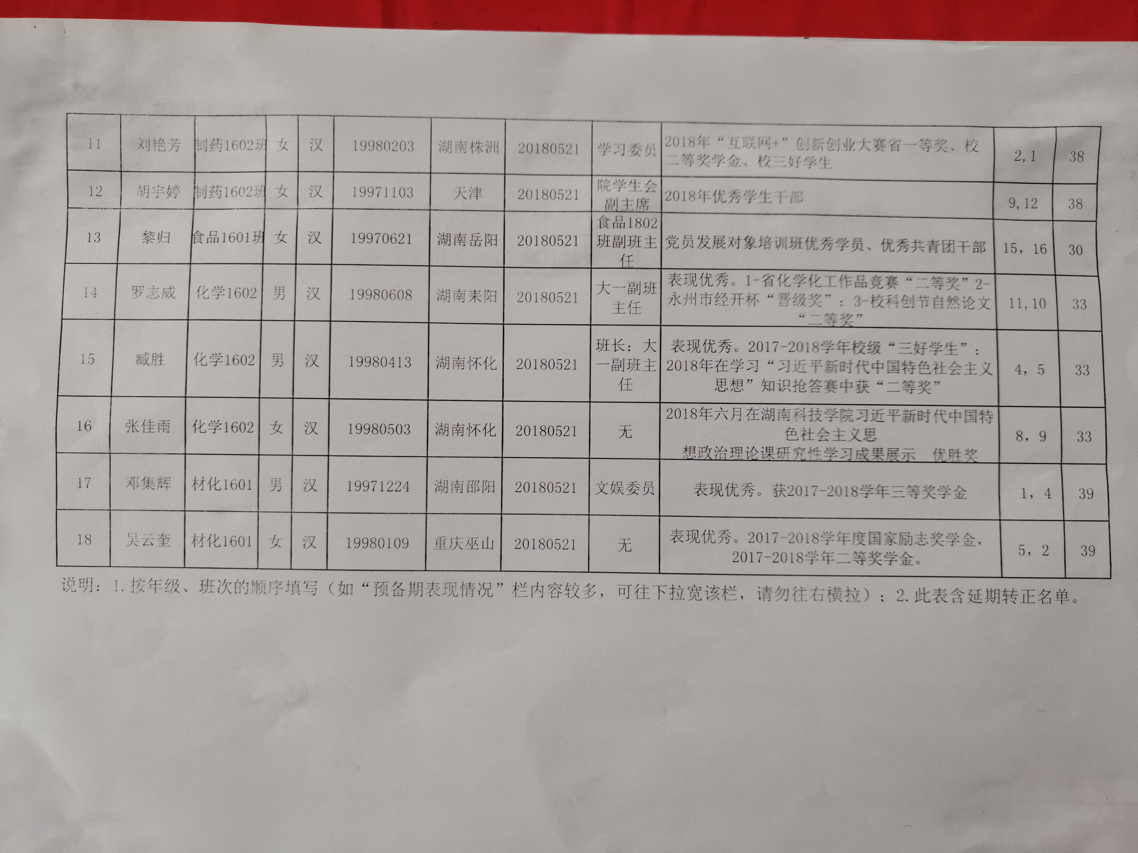 2019年上学期党员发展对象公示