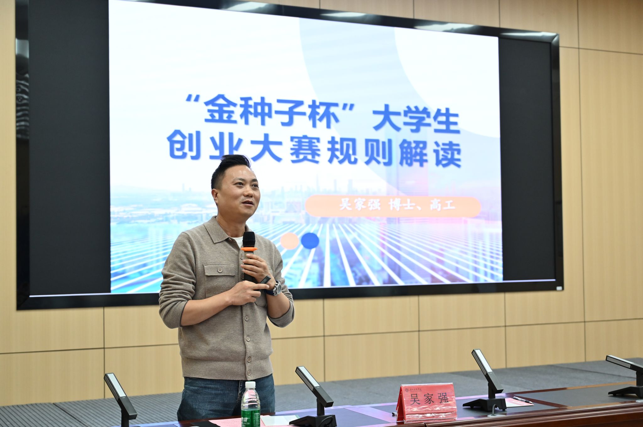 本网讯(记者 李梦雅 刘斌 摄影 杨芊澍)10月28日,为深入贯彻落实湖南省委、省政府关于支持大学生创业“七个一”行动要求,依托“潇湘启航”省级大学生创业指导工作室举办的“创业力量 产业新篇”——面向湖南省“4×4”与永州市“3×2”现代化产业体系创业论坛暨《金种子》MV发布仪式在明德楼100报告厅成功举办。论坛旨在进一步落实省委书记沈晓明来校调研重要指示精神,深化校企合作,推动大学生创新创业与地方产业需求发展。