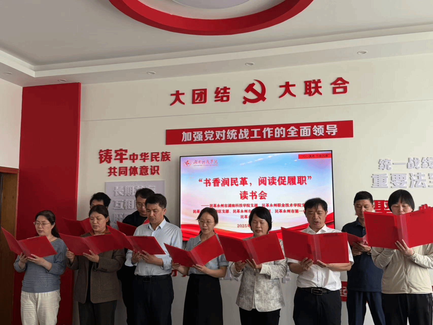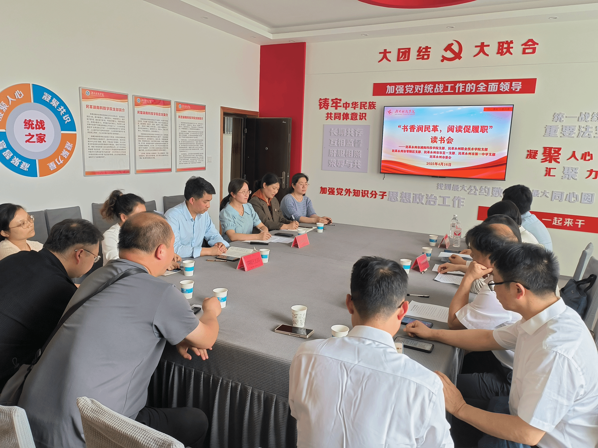 我校民革支部还联合各兄弟支部举办了“书香润民革,阅读促履职”读书会。来自5个支部的9名党员结合自身学习工作实践,从不同角度分享了读书体会。其中,我校民革支部党员邹小阳分享了《王船山》阅读心得,刘晓霞分享了《人工智能的底层逻辑》阅读心得,党员们还齐声朗诵了《满江红·统一战线赋》,并纷纷表示,通过读书分享和交流,不仅感受到阅读的魅力,也进一步明确了履职尽责的方向。