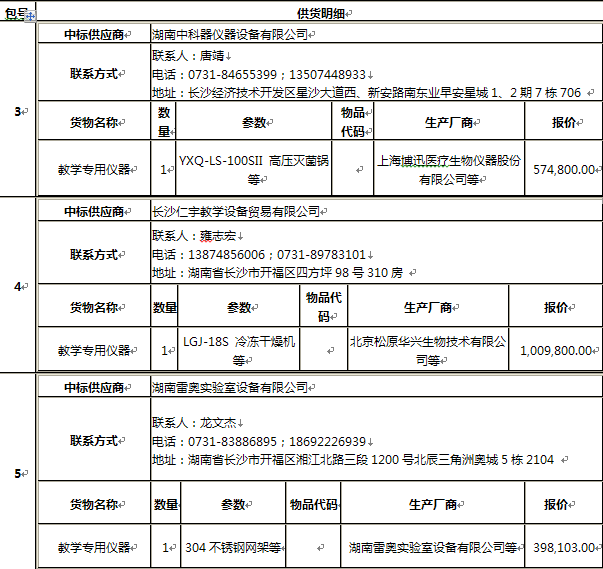 受8868官方网站的委托,湖南博进招标代理有限公司代理机构对 2017年中央财政支持地方高校共建项目第二批采购项目进行公开招标,经评标委员会评审,采购人确认,现将中标信息公告如下: