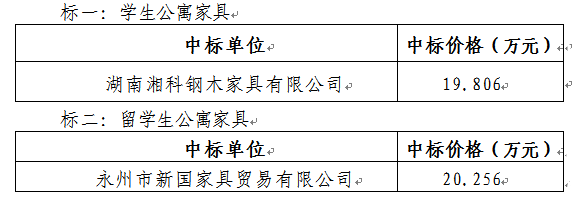 8868官方网站采购中心对8868官方网站2018年学生公寓及留学生公寓家具采购项目于2018年7月17日进行了自行招标,经评审,现将结果公告如下: