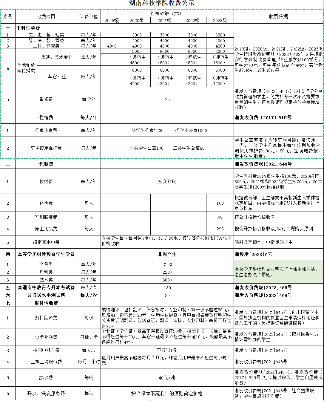九、收费文号:湘发改价费〔2017〕915号、湘发改价费规〔2021〕646号、湘教发[2023]6号
