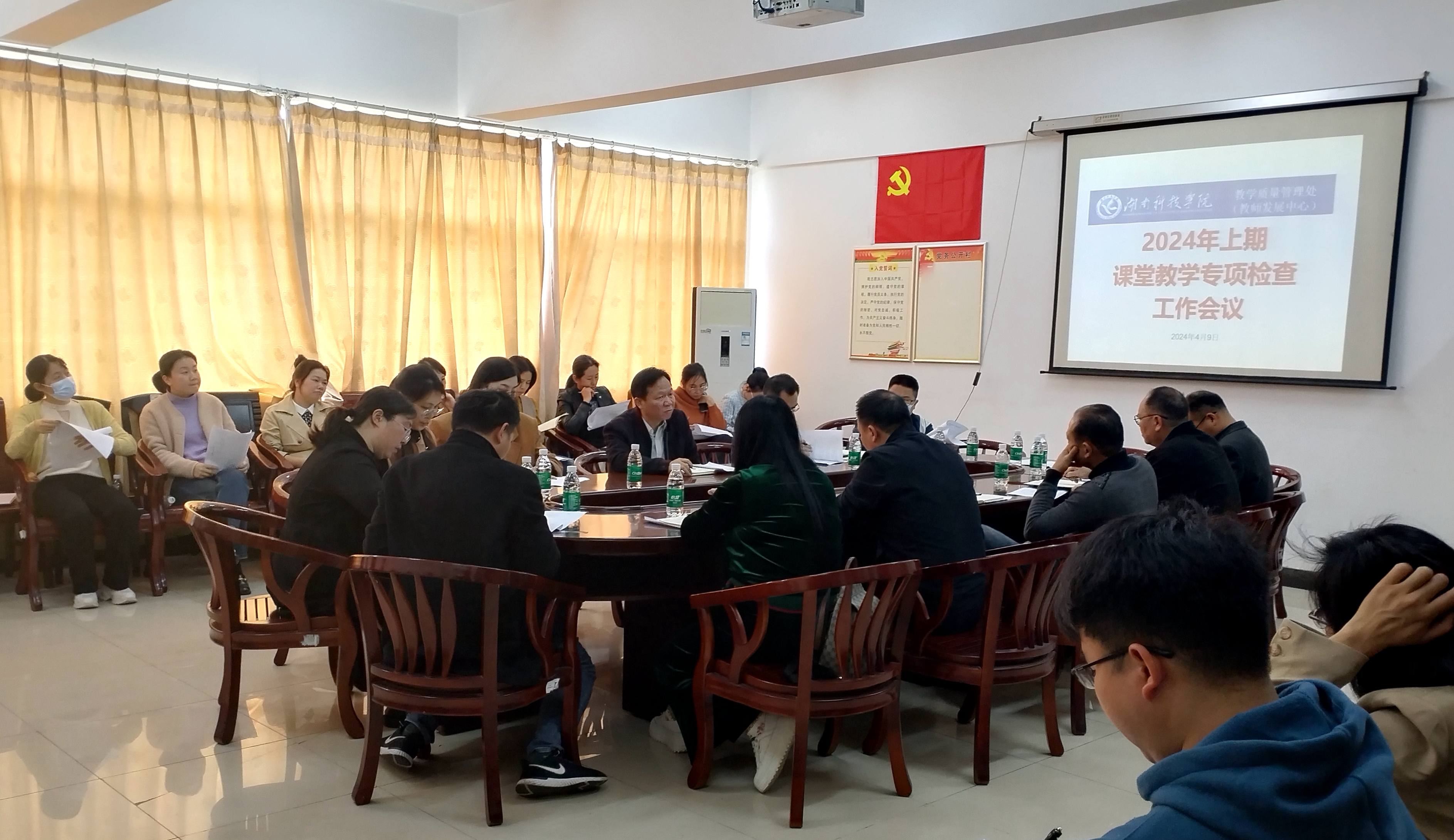 为进一步规范教学管理,提高教学质量,优化教风学风,4月9日下午,我校在行政楼413会议室召开2024年上期课堂教学专项检查工作会议。教学学院主管教学工作副院长、教务办人员及全体教学专项检查工作人员参加会议。