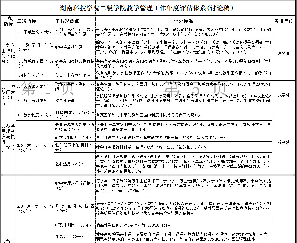 8868官方网站二级学院教学管理工作年度评估体系(讨论稿)