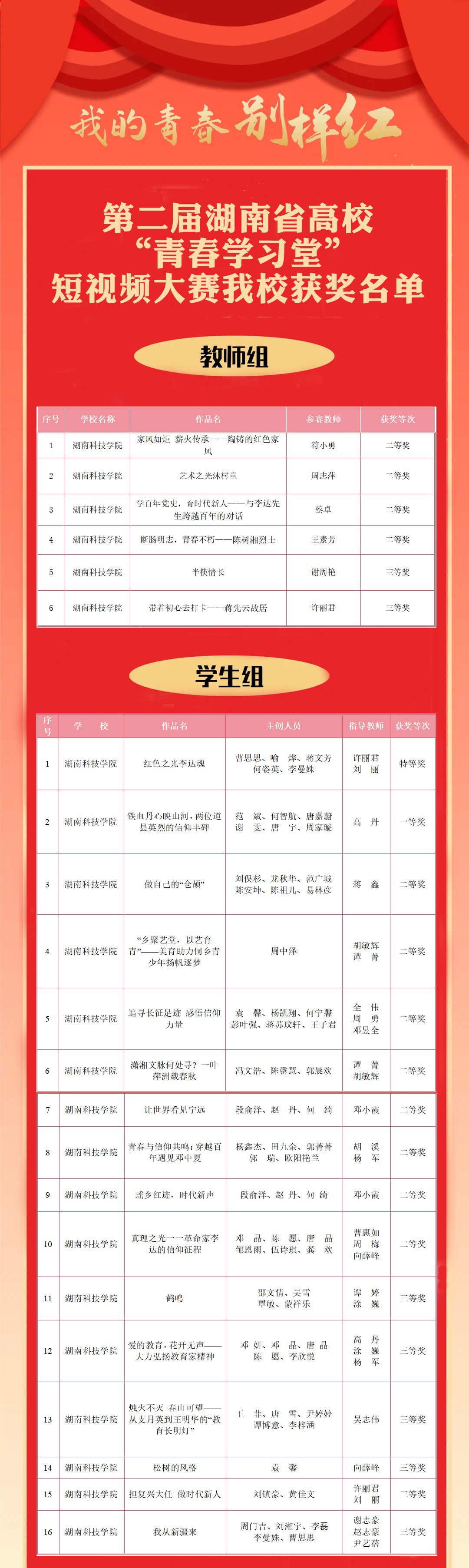 我校在湖南省第二届“青春学习堂”短视频大赛中斩获佳绩(图)