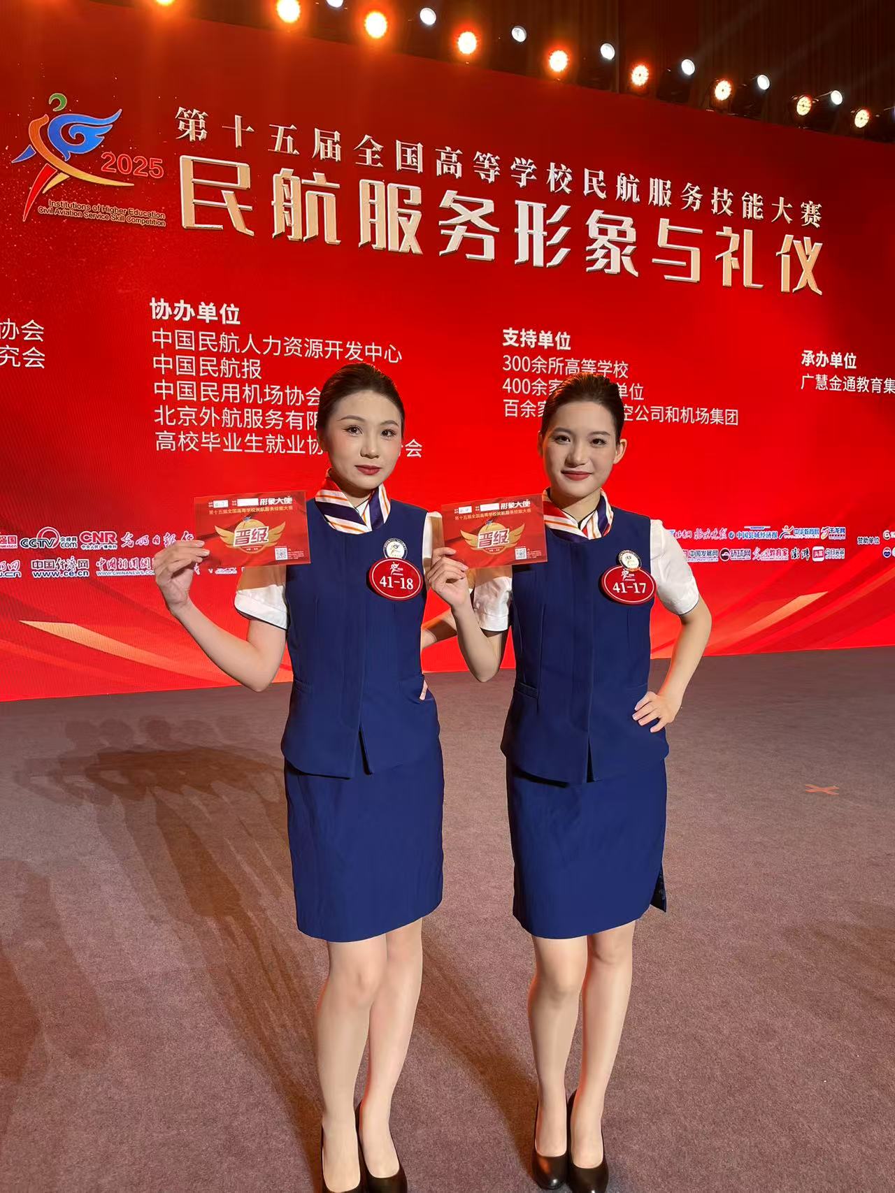 航空服务艺术与管理专业2301班邓瑜璇和2302班奥志琪两名同学从一万多名参赛者中脱颖而出,在民航服务形象与礼仪赛道获得“形象大使”个人奖,成为本届赛事中备受瞩目的“新锐力量”。获奖学生代表邓瑜璇和奥志琪表示:“大赛不仅检验了我们的专业水平,更让我们认识到民航服务背后的责任与使命。未来我们将继续精进技能,为民航事业高质量发展贡献力量。”