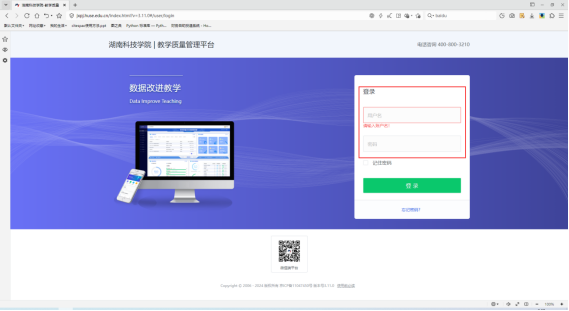 1.在浏览器中打开8868官方网站教学质量管理平台(网址为:https://jxpj.huse.edu.cn/)