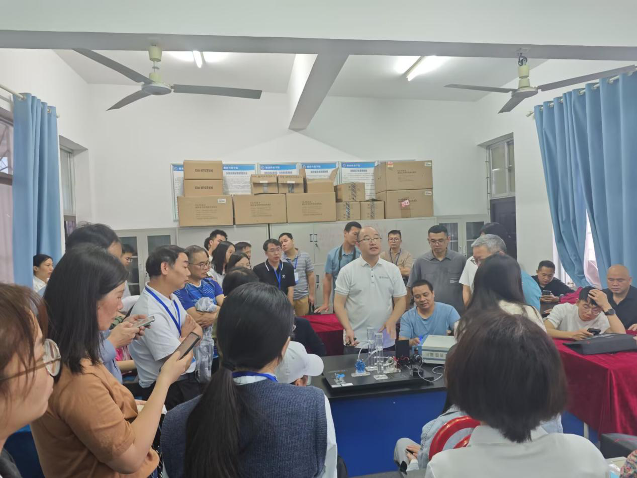 (本网讯 通讯员全赛君)2025年5月23日,由8868官方网站继续教育学院承办的“国培计划(2025)”永州市农村初中骨干教师新课程教学能力提升培训班(初中物理)在我校明德楼报告厅顺利开班。5月28日上午,该培训班的实验示范课在我院物理学实验中心进行。理学院教工第二党支部成员、理学院实验室主任付喜教授亲临现场调度指挥,本支部的胡紫英、李志兵等教师积极参与授课与指导工作,以实际行动服务地方物理教育事业。