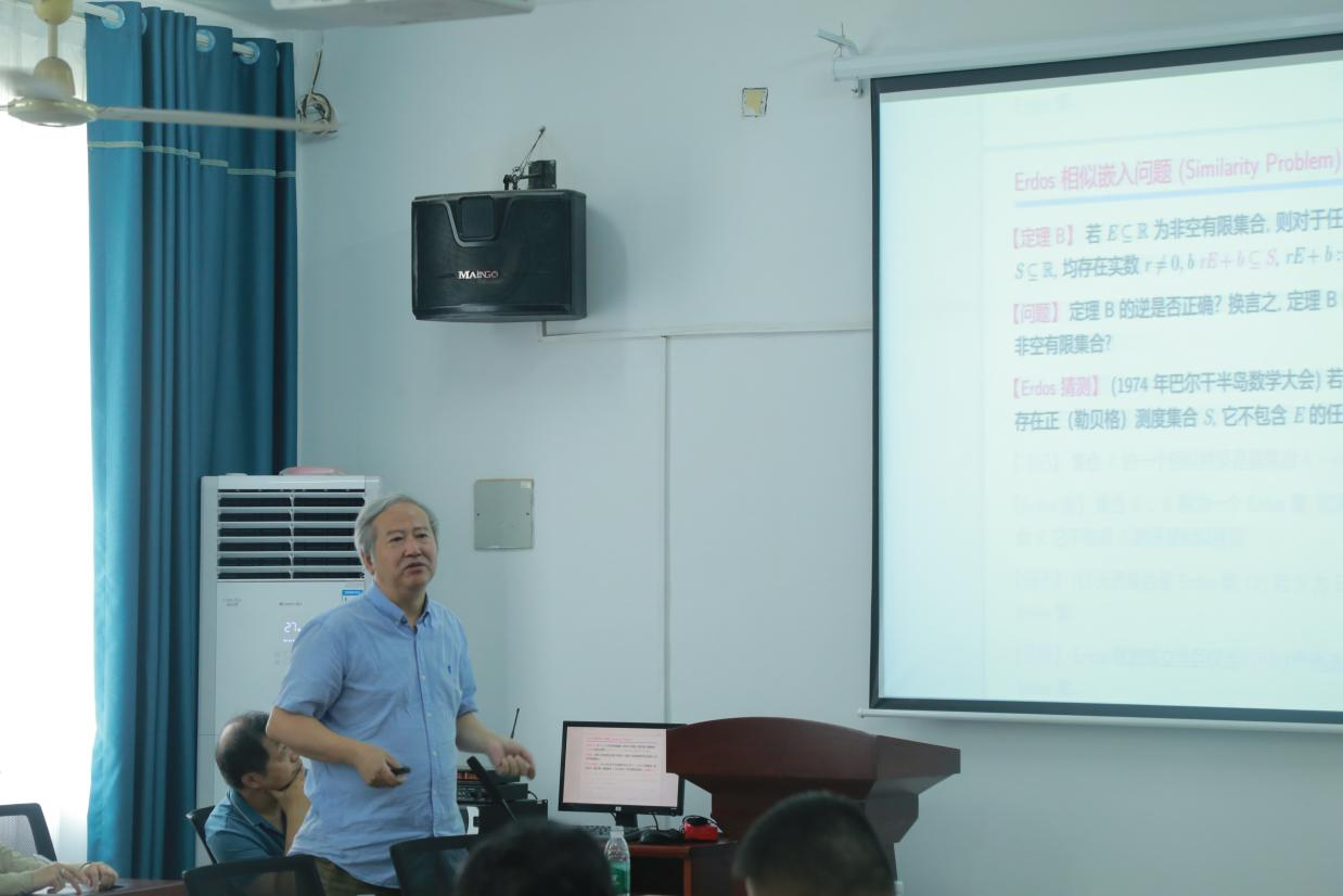 讲座伊始,李文侠先简单介绍数学家Erdos的学术成就,由此引进Erdos相似嵌入问题,介绍Erdos的猜测并例举其中几个分析。接着讲述Erdos猜测的探索之路,详细介绍探索的三个方向,然后讲述了二维中的Erdos集和Erdos猜想,对得到的两个推论进行解释。讲座的最后,李文侠教授推荐在座的老师去了解Erdos的学术研究。