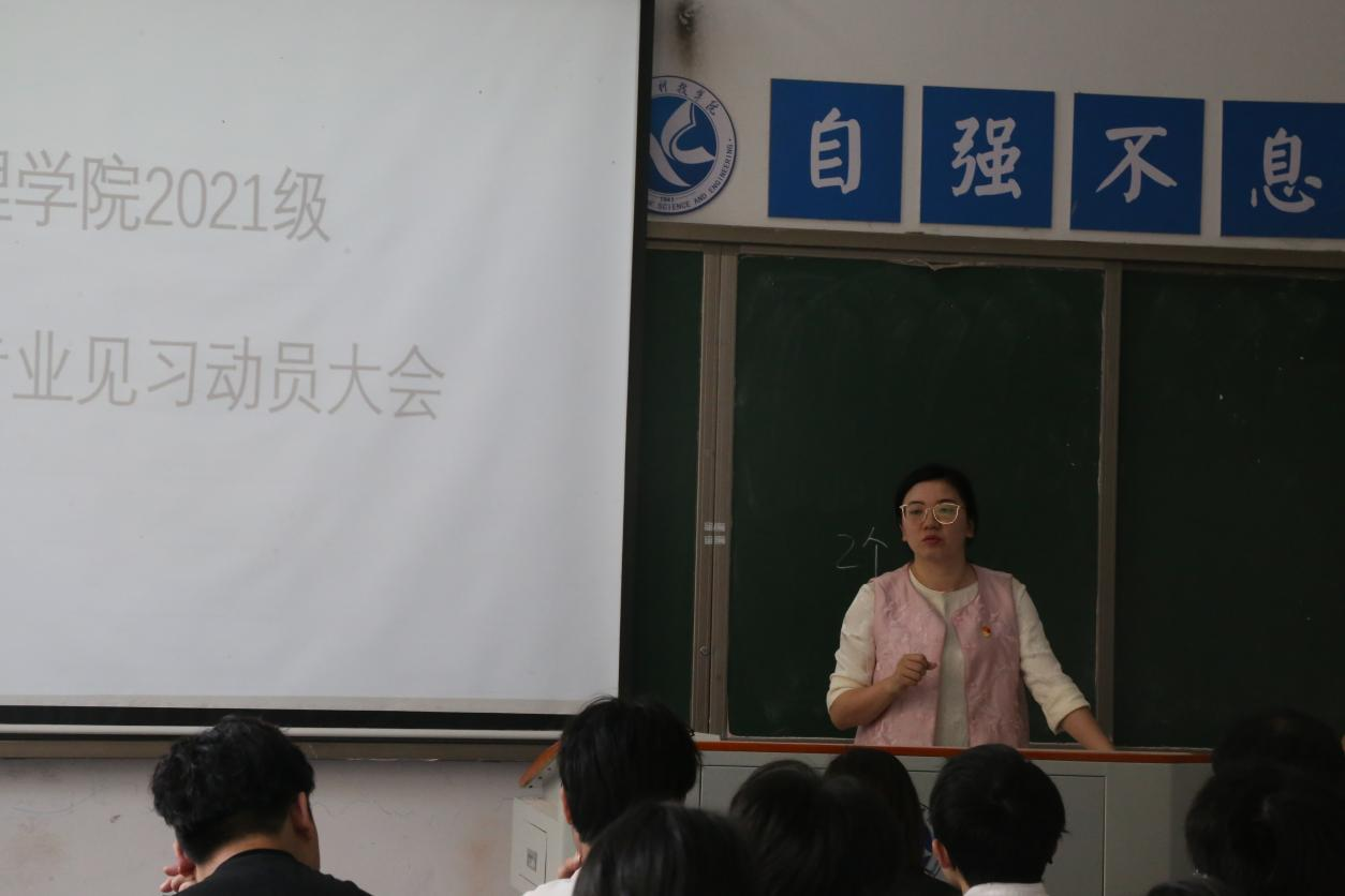 大会伊始,欧阳书记强调不失联、不犯规、不大意”“三个不,合理部署近期工作。理学院副院长孔永红老师希望同学们能够坚定自信,努力提升自己的实践能力和职业素养,为未来的职业生涯打下坚实的基础,同时再次强调了安全第一,做到一个都不掉队。李静老师就见习内容、见习要求做了详细的部署安排。