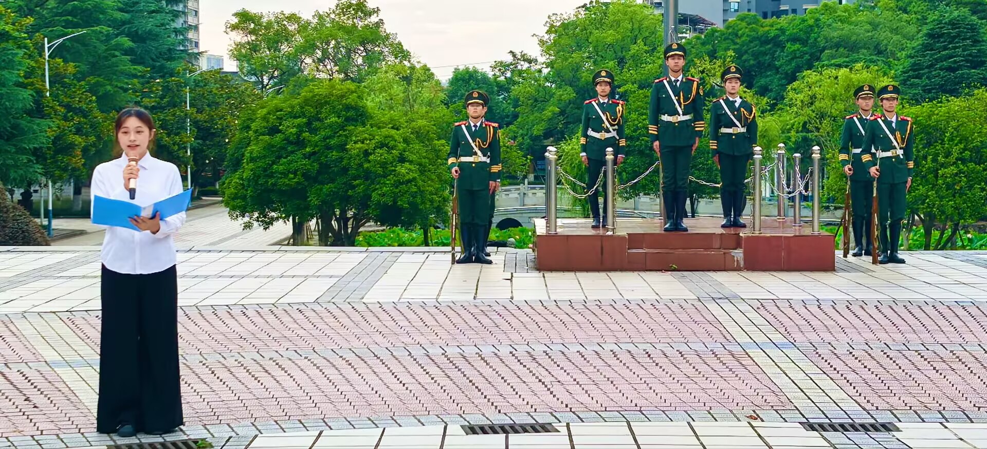 7点整,升旗仪式正式开始。国旗护卫队迈着整齐的步伐护送国旗入场,伴随着雄壮的国歌声,五星红旗冉冉升起,全体师生肃立行注目礼,现场气氛庄严肃穆。