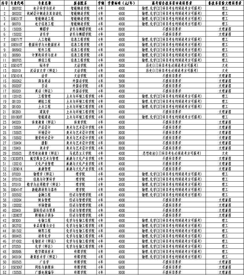 其他省份,美术学、视觉传达设计、环境设计、产品设计、摄影等五个专业,按专业成绩加文化成绩的综合成绩总分从高到低排序,择优录取。音乐学、舞蹈学专业按专业统考成绩×60%+高考文化成绩(含政策性加分)×40%的综合成绩从高到低排序,择优录取。航空服务艺术与管理专业按专业统考(联考)成绩×70%+高考文化成绩(含政策性加分)×30%的综合成绩从高到低排序,择优录取。