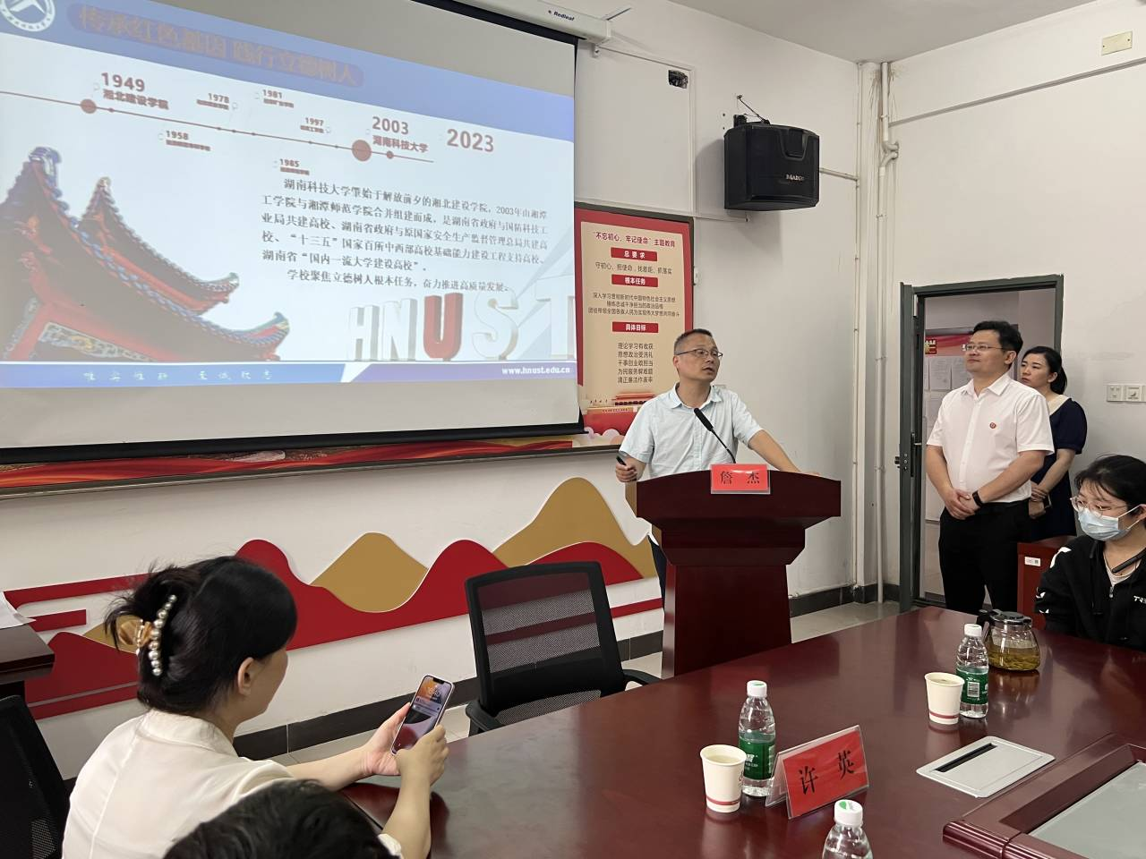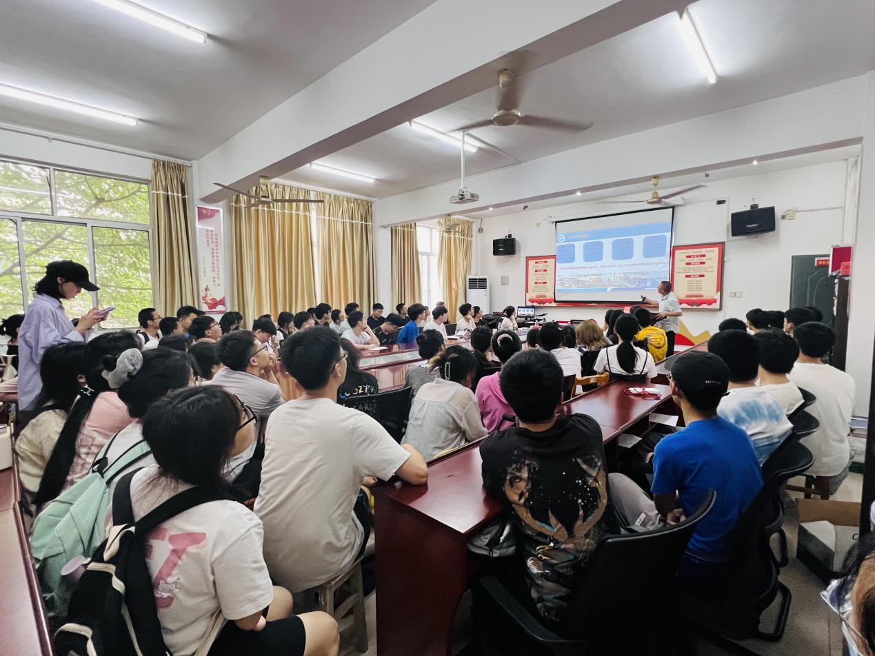 本网讯(通讯员 王彩凤)为进一步提高同学们考研热情,激发同学们考研积极性,增强同学们考研信心,我院特邀湖南科技大学物理与电子科学学院副院长詹杰教授和副院长许英教授于6月8日在明理楼308针对物理专业学生进行了详细的考研宣传。理学院党总支书记唐卫华主持,讲座吸引了来自理学院、智能制造学院有考研意向的学生50余人。