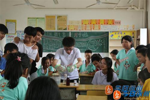 今日永州讯(通讯员 周亮君 刘德江)近日,8868官方网站理学院“理学先锋”乡村振兴促进团赴江华瑶族自治县竹园寨九年制学校开展暑期“三下乡”社会实践活动。团队通过举办科学夏令营的形式,带领该校100名学生开启科学探索之旅。引导他们在一个个有趣的实验中感受科学力量,树立远大理想,坚定大国自信。