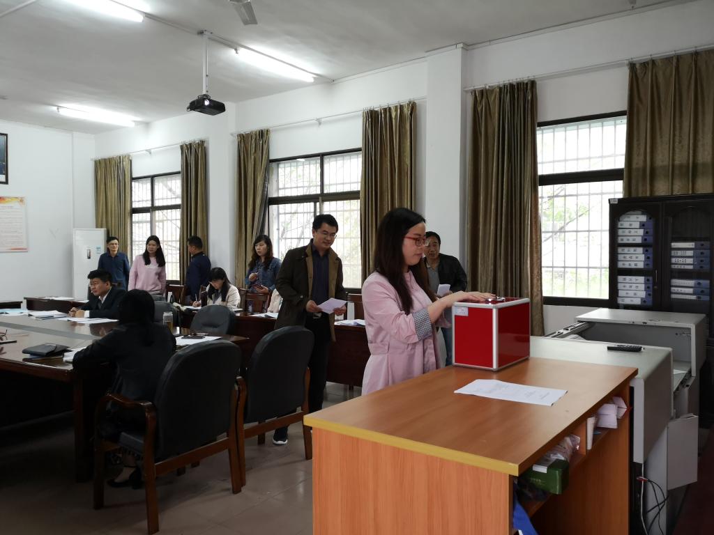 本网讯(通讯员 李艳)为了进一步加强学院基层党组织建设,优化基层党组织领导班子结构,充分发挥基层党组织的政治核心作用和战斗堡垒作用,在学校党委统一部署下,我院党总支委员会于4月23日上午在鹤鸣楼405会议室召开换届选举大会。