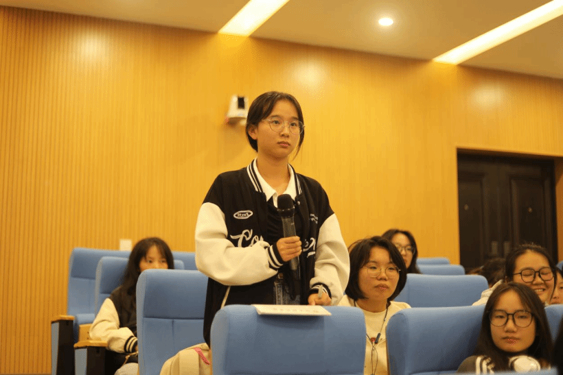 在交流互动环节,与会同学围绕当前就业、专业学习兴趣培养、考级考证、考研等方面提问。徐心茹皆一一认真给予回答,她提到:专业学习的兴趣培育是一个过程,大家不用过于焦虑,当下要保持好学习状态;思想政治教育专业考研竞争压力大,大家可以还可以考虑一下马克主义理论一级学科下的其他5个二级学科。