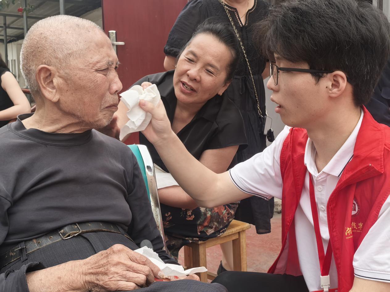 在黄古山敬老院,团队通过红色经典歌曲合唱、诗歌朗诵等节目,与老人们共忆峥嵘岁月,引发老人们强烈共鸣。一位九旬抗美援朝老兵在观看表演时潸然泪下,他紧握志愿者的手说道:“你们唱的歌让我想起战友们。当年保家卫国,如今看到青年一代不忘历史、传递温暖,这就是最好的告慰。”活动还通过卫生清扫、物资分发等务实行动,让关怀落到实处。