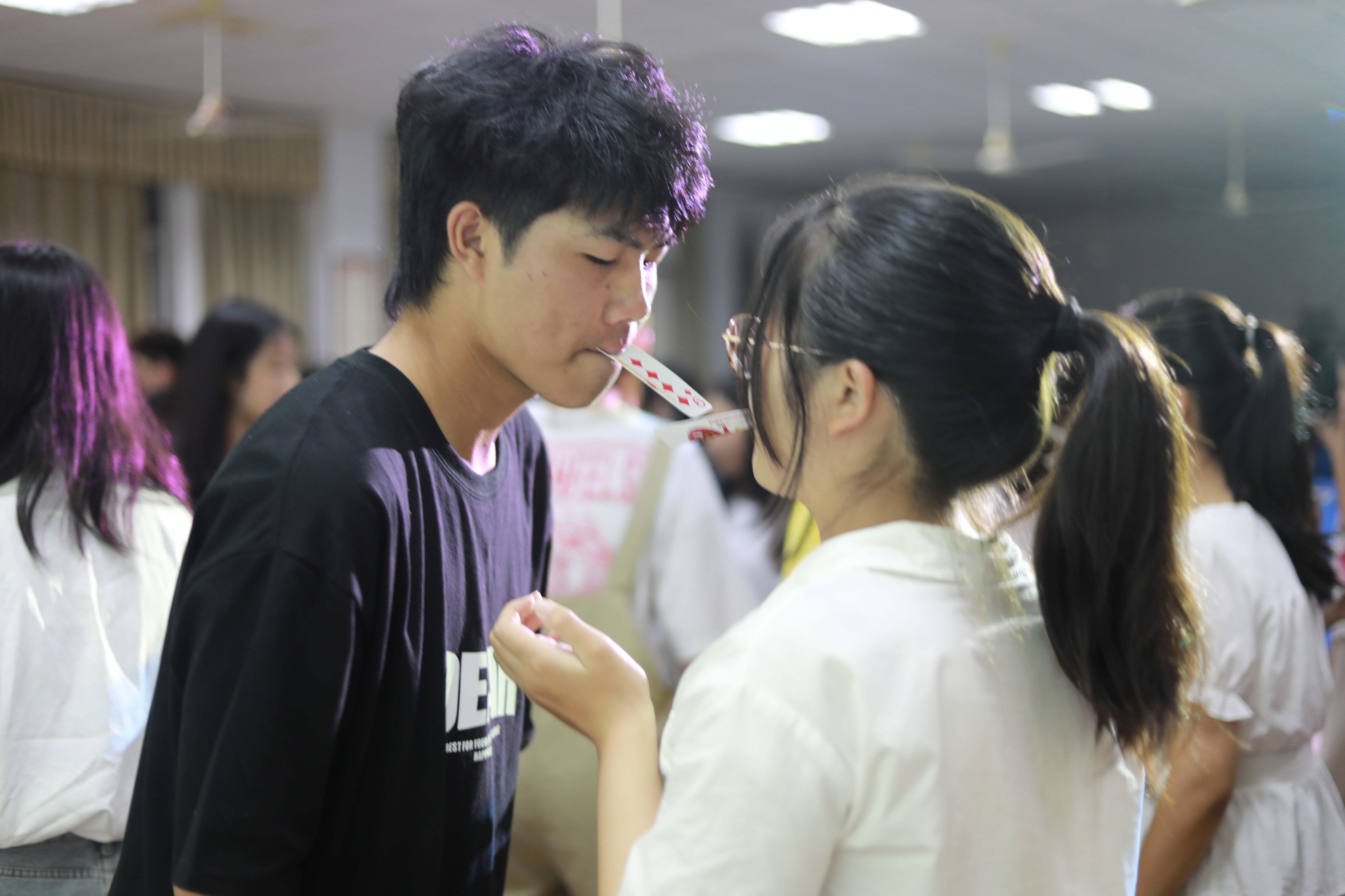 “谁和我一样”,在开始的暖场活动中,大家围成一圈,依次来到舞台中央介绍自己的兴趣爱好,看到与自己兴趣相投的就给他一个联系方式,“加个好友啊!”迅速拉近彼此间的距离。“传牙签、盲人与拐杖、你有问题我们帮、耳语传真...”这些经典又趣味十足的小游戏,全员参与,共享快乐,沉浸式体验,交友的乐趣入脑入心。