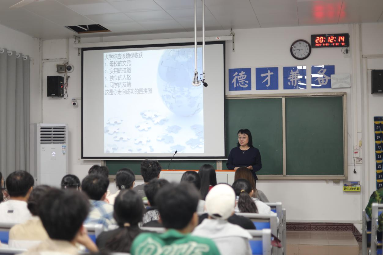 见面会后,院长廖雅琴教授为2025级新生开展专业思想教育,讲授精彩的入学第一课。她结合自身上世纪九十年代读大学的时代切入点,对比当下大学生所处的新时代,勉励同学们要珍惜美好时代,静下心来深耕专业学习,培养批判与创新能力,树立正确的读书观念。她指出:“要想拥有一个无悔的大学人生,新同学们应该在大学期间重点培养四种能力;一是适应能力,二是社交能力,三是学习能力,四是职业生涯规划能力”廖院长还为同学们介绍了学院的思想政治教育专业基本情况、特色及本专业“‘五三三’人才培养模式”取得的成效。最后,她寄语新生“要尽快融入新环境,以敢闯敢试的锐气探索未知,在实践中锤炼本领、快速成长,成长为有理想、敢担当、能吃苦、肯奋斗的新时代青年!”