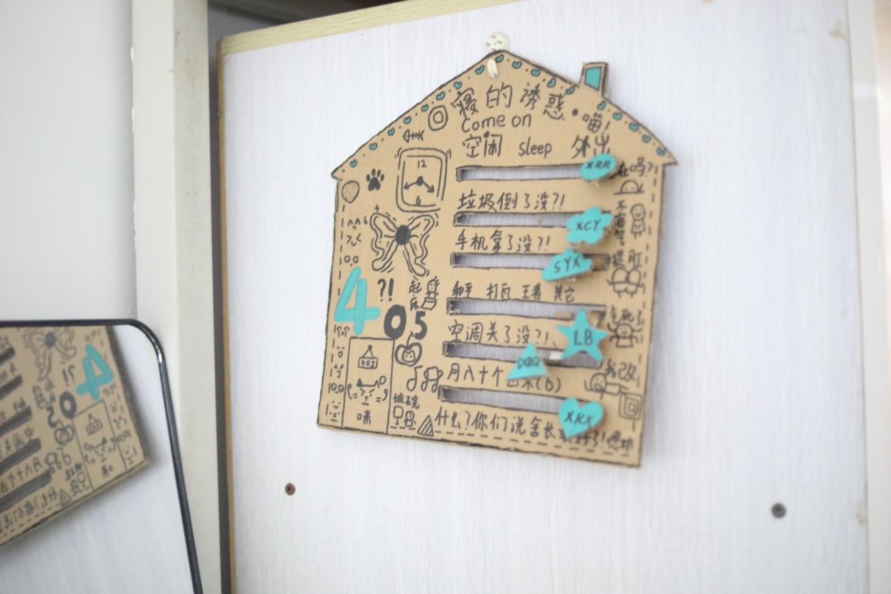 走进参赛寝室,各寝室风格鲜明、创意十足:有的寝室利用废弃纸壳手工制作专属门牌,充满家的温暖;有的寝室以“可爱风”为主调,门窗上贴满卡通图案、励志语录等装饰贴纸,床帘搭配同色系玩偶,营造出活泼温馨的氛围;还有寝室主打“简约实用”,桌面将书籍、生活用品分类收纳,整体有序又不失生活气息……。“每个装饰都藏着我们的“小巧思”,既想让寝室更舒服,也希望留下属于我们的共同回忆。”思政2501班李蔚介绍道。