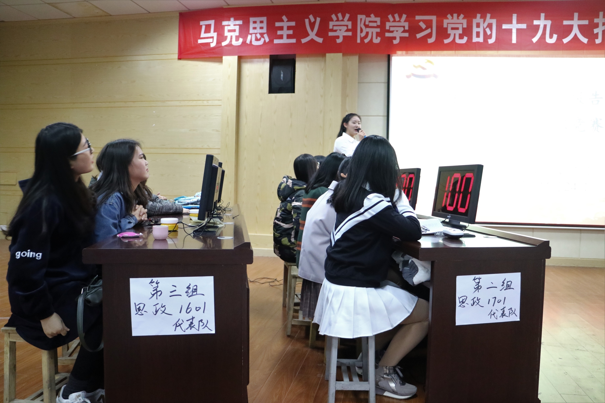 据了解,十九大后,马克思主义学院掀起了学习宣传贯彻党的十九大精神热潮。先后开展了学习交流会、专题讲座、征文、抢答赛等活动,推动了大学生思想政治教育的深化。