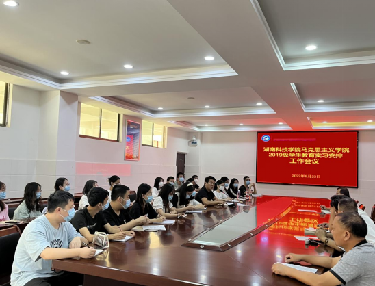 本网讯(记者吴贵佳)9月23日,8868官方网站马克思主义学院思想政治教育专业2019级部分学生教育实习安排会在永州工商职业中专学校综合楼召开。永州工商职业中专学校副校长杨林海、政教主任彭其战、8868官方网站马克思主义学院副院长李定坤出席会议,实习带队老师刘克方、思政2019级的25名实习生参加会议。会议由永州工商职业中专学校教务处主任眭光明主持。