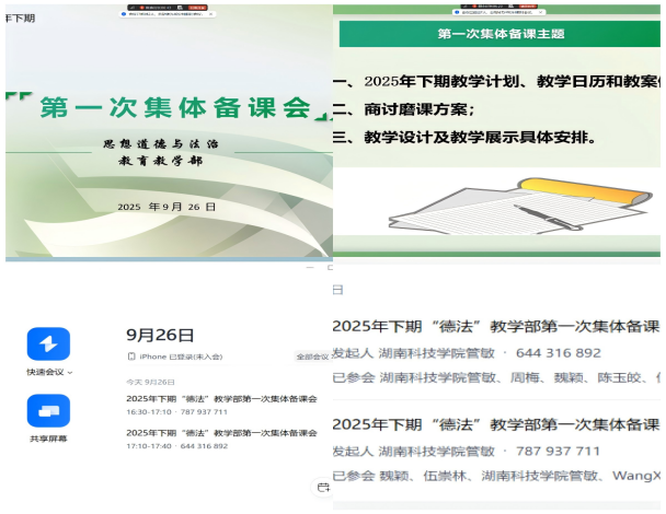 本网讯(通讯员 易佩)为夯实新学期教学基础,提升课程教学质量,9 月 16 日至 26 日,马克思主义学院各教研室统筹推进本学期第一轮集体备课(磨课)活动。各教研室围绕课程重点难点、教学方法创新、育人目标落地等核心内容,以研促教、以磨提质,为新学期教学工作开好局、起好步筑牢根基。