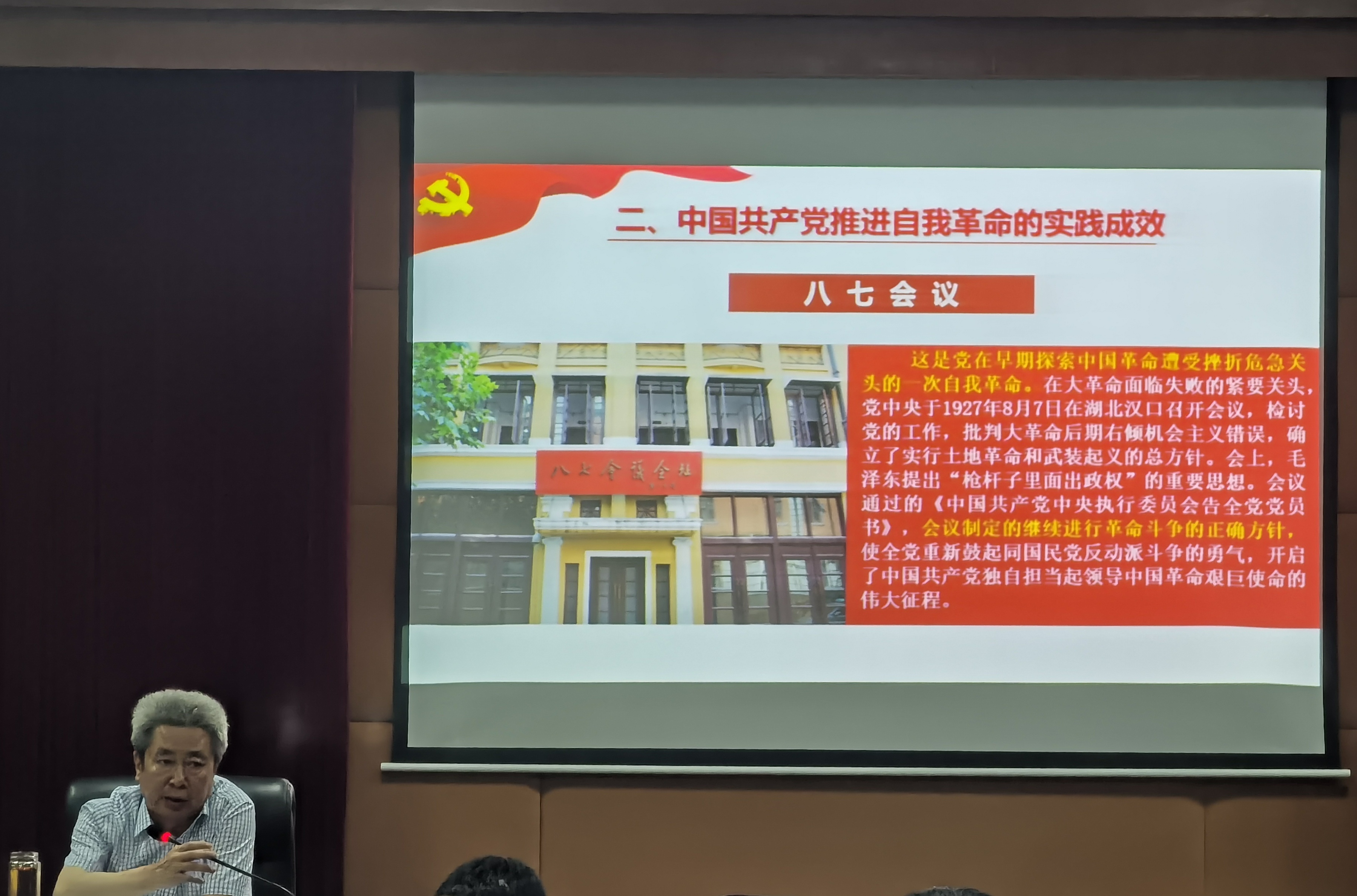 本网讯(通讯员 王华炜)5月12日晚,校党委书记曾宝成在行政楼八楼会议厅为马克思主义学院党总支、智能制造学院党总支以及机关党委第一党支部党员师生代表讲授《加强党史学习教育,推进党的自我革命》专题党课。