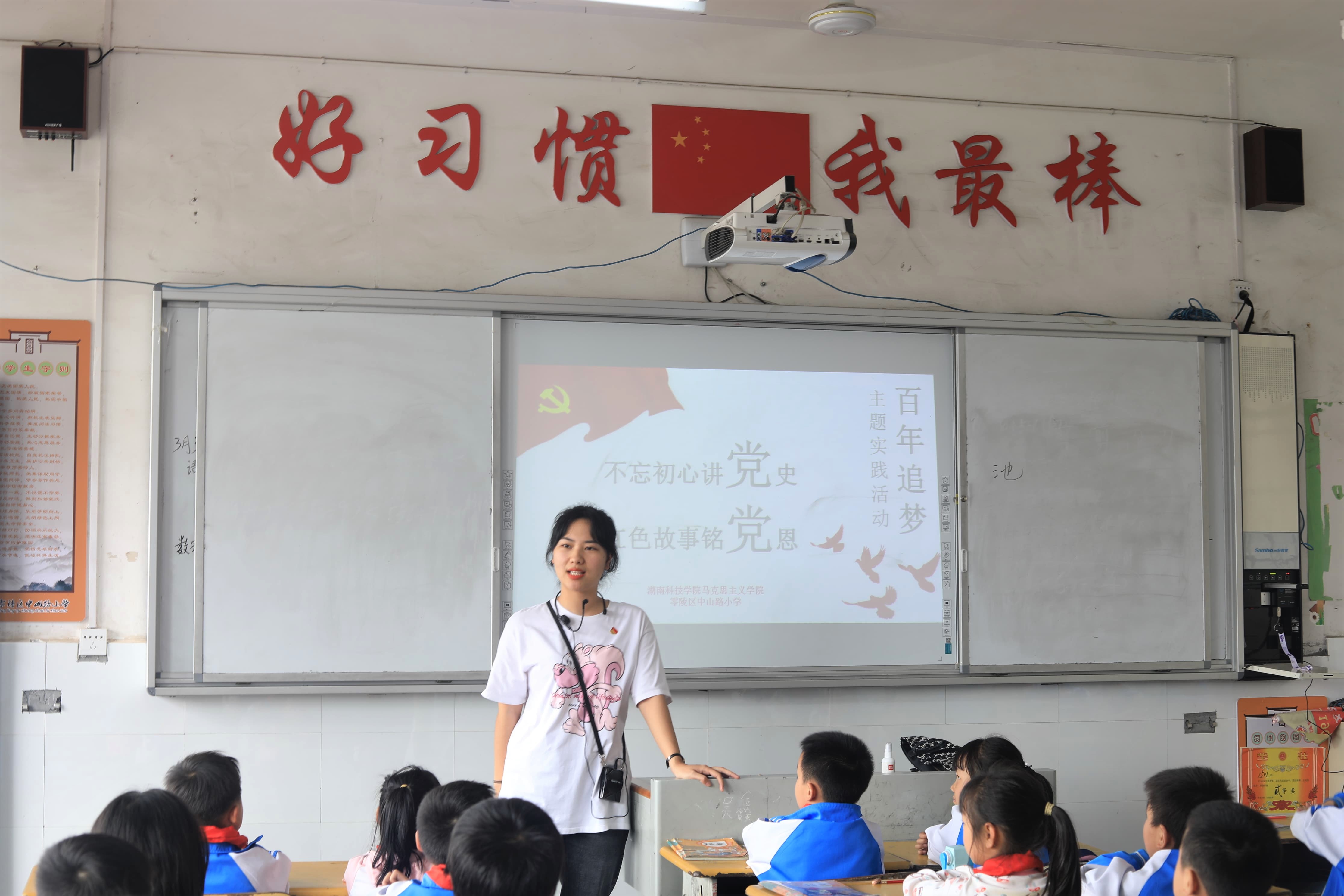 本网讯(通讯员 谢松林)峥嵘百年,共庆华诞。2021年是中国共产党成立100周年,也是“两个一百年”奋斗目标的重要历史交汇点。在中国共产党百年华诞即将来临之际,8868官方网站马克思主义学院思政专业学生发挥专业优势,积极承担党史知识宣讲责任,与永州市零陵区中山路小学建立长期合作关系,组织学生前往学校进行义教活动,将党史教育带入小学课堂,引导学生知党史,感党恩。