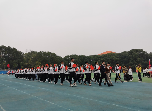运动会开幕式在万分期待中开始。随着音乐声响起,各个学院队伍依次入场,我院方阵队服装统一,手拿小红旗,阔步走来,他们步履整齐,面带微笑,激动的喊出“以梦为马,不负韶华。以马为梦,一马当先!”独具特色的口号,展示出青春的朝气与活力。