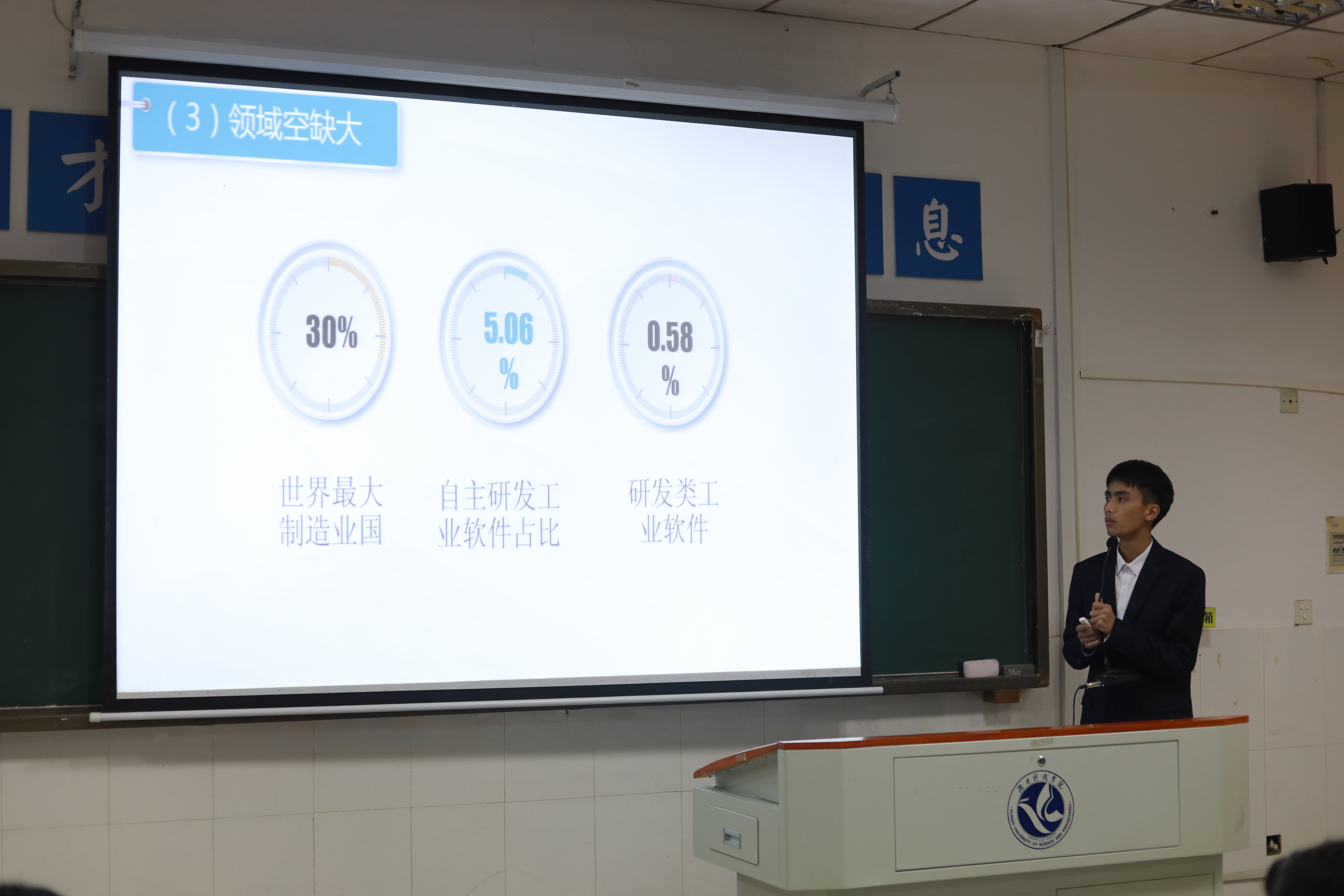 “解决好农民问题才能更好地为国家建设做贡献,其中三农问题尤为重要。”来自计科2102班的小组提出了对乡村振兴战略背景下仍存在的农民问题的看法,并提出培育新时代乡村文明的解决措施;软件2102班则以“新时代大学生在工业软件创新的使命与担当研究”为课题,举例EDG夺冠后出现的低俗行为进行展开论述,结合自身专业,联合时政热点,强调大学生必须要树立远大理想,将自己的未来与国家的命运紧密结合。