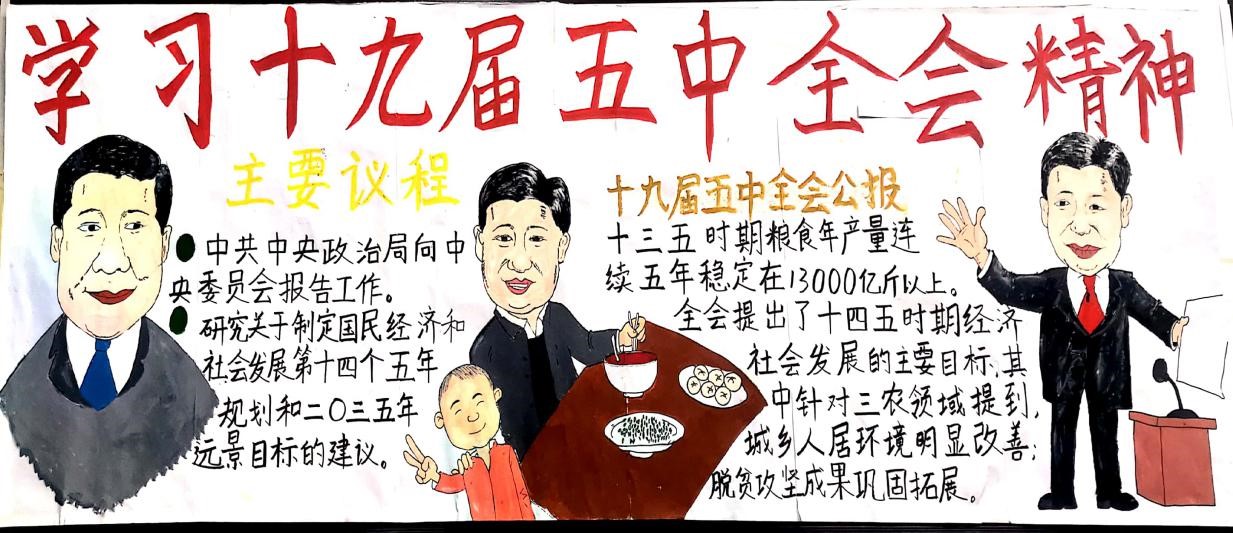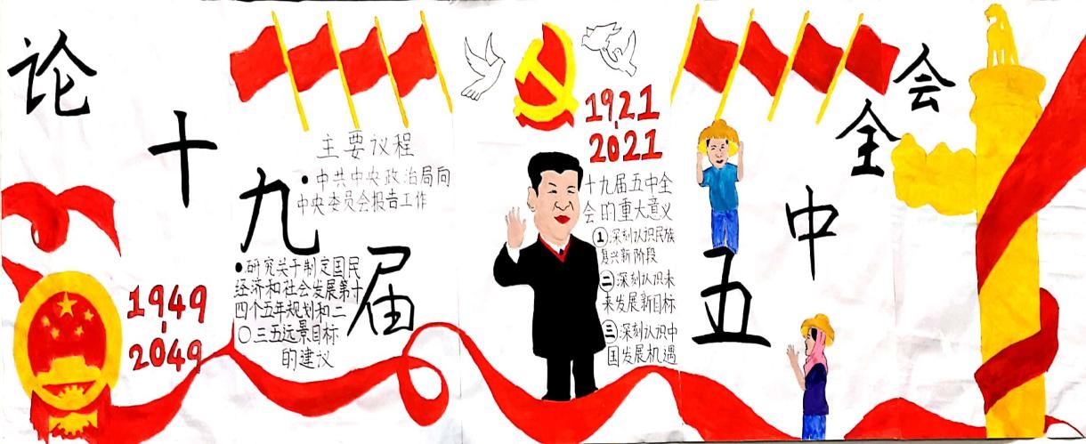 近日,8868官方网站马克思主义学院思想政治专业2020级学生为了深入贯彻学习党的十九届五中全会精神,通过“手绘海报”的形式,将十九届五中全会精神的实质和内涵“绘”入人心。