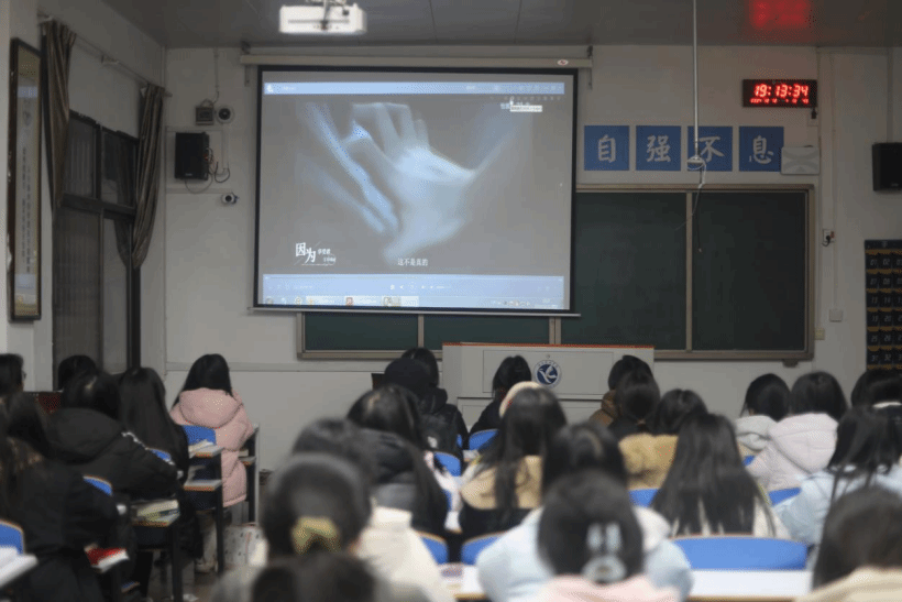 许圣翰围绕微笑抑郁症的含义、其产生的原因以及如何克服微笑抑郁症展开讲述,通过交流互动、案例分享、观看电影《深海》片段等方式,帮助同学了解识别微笑抑郁症,引导同学培养积极向上的心理品质,提升心理素养。