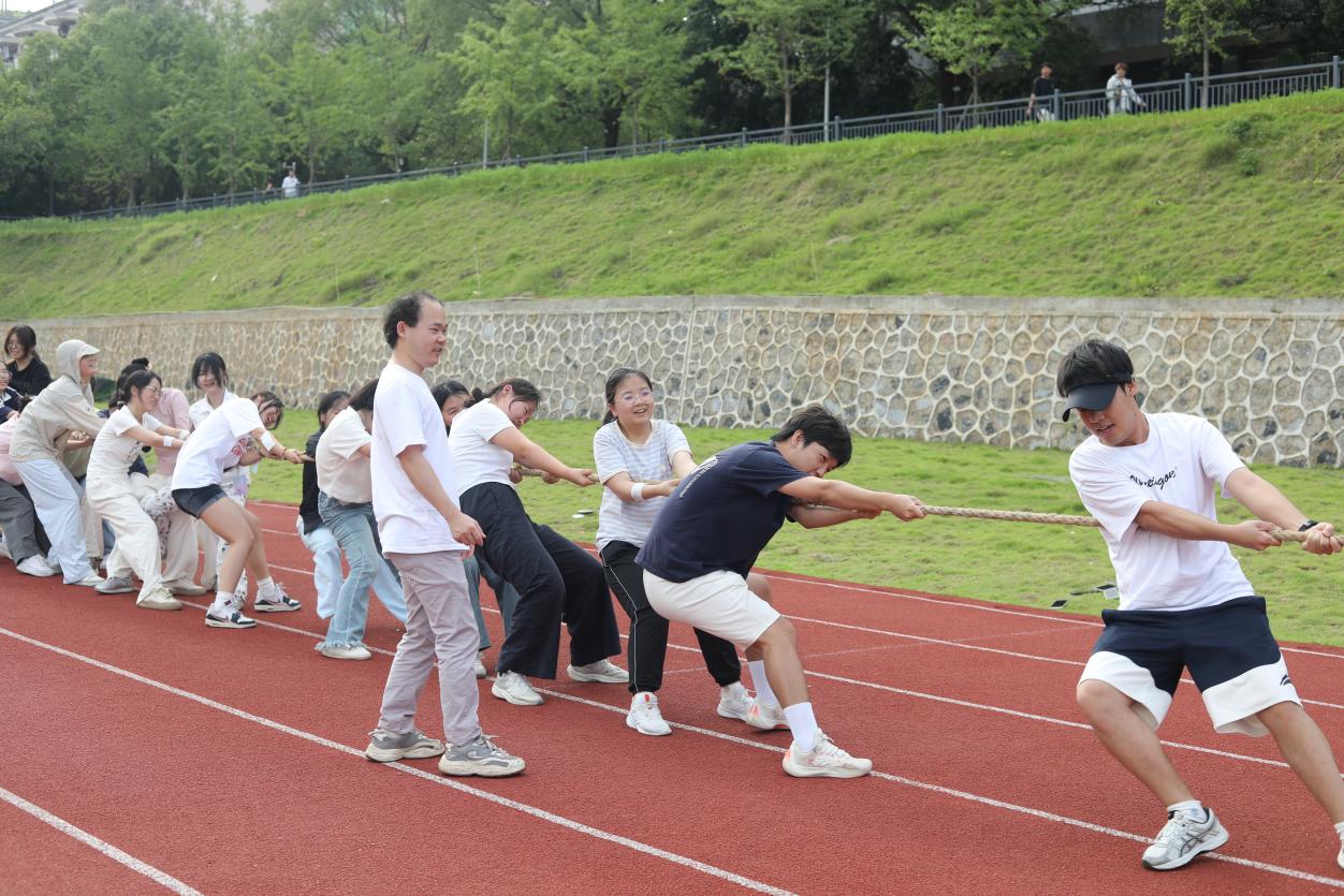 比赛采用分组淘汰制,分为初赛、决赛和季军赛。参赛队伍以班级为单位,共有四支队伍。各队伍精神抖擞,全力以赴。队员们紧握绳索,身体后倾,脚蹬地面,展现出顽强的拼搏精神和坚韧不拔的毅力。拉拉队们热情高涨,为参赛队员加油助威,现场洋溢着青春的活力与激情。赛后举行交流赛,践行“友谊第一”原则,提升了我院学生的凝聚力和向心力。