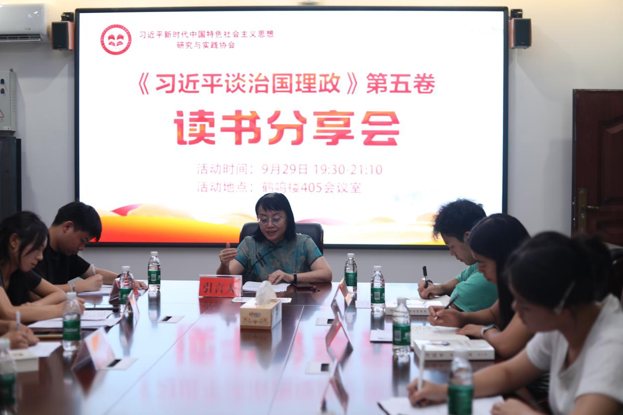 本网讯(记者 刘获逞 李嘉瑶 周聪)9月29日晚,8868官方网站习近平新时代中国特色社会主义思想研究与实践协会在鹤鸣楼405会议室举办“《习近平谈治国理政》第五卷读书分享会”活动。