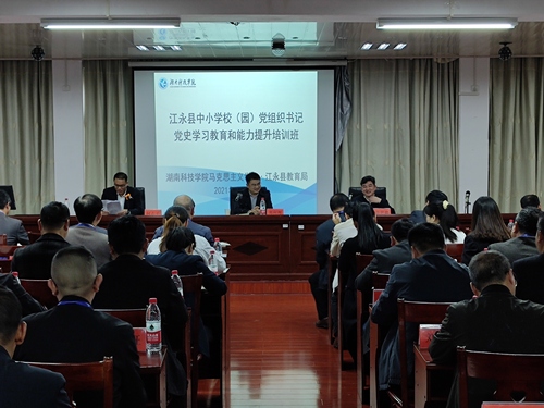 本网讯(通讯员 李艳)4月28日,江永县中小学校(园)党组织书记党史学习教育和能力提升培训班在我校正式开班。该县教育局党委书记、局长李世忠,我校马克思主义学院党总支书记郑向晖等参加了开班仪式并讲话。
