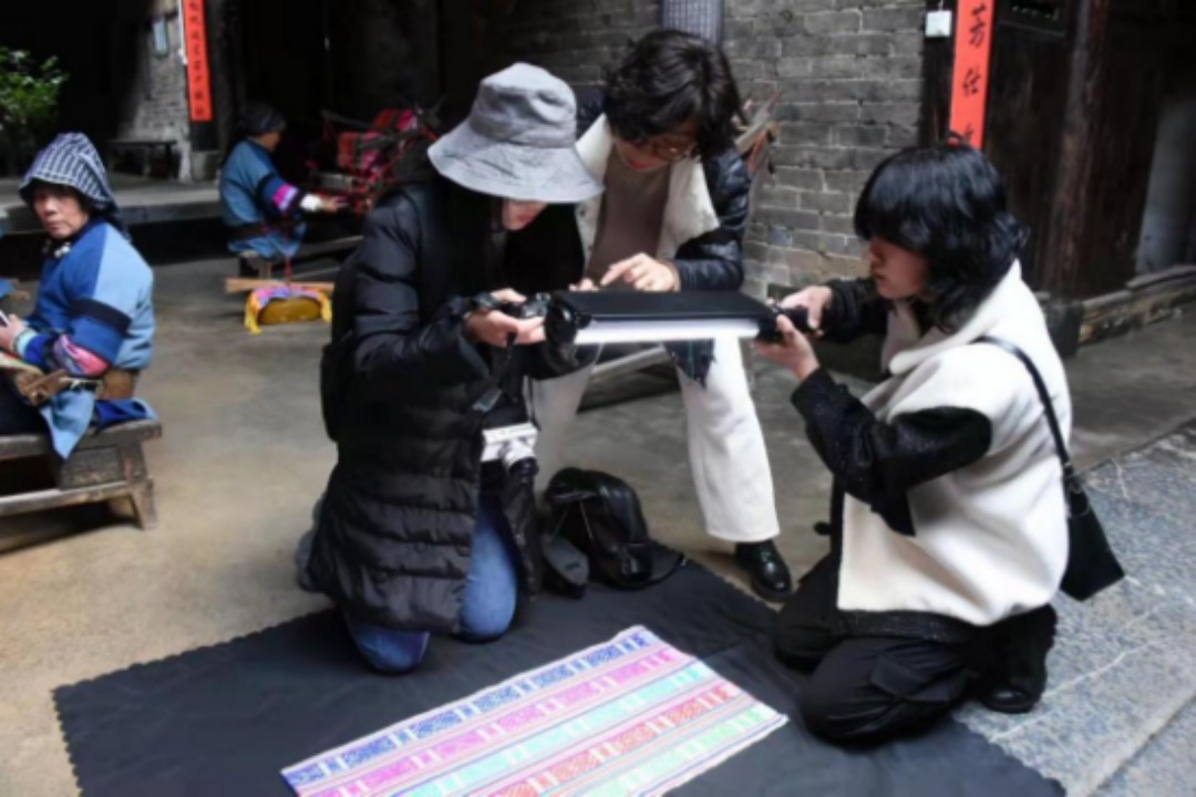 文化振兴是乡村振兴的铸魂工程,文化在乡村振兴中具有不可替代的重要作用,此次考察的主要目的是挖掘江华地方特色产业,传承江华瑶族文化,通过全面采集整理瑶族织锦工艺样式,深入企业、商户、职校、非遗传承研习基地,充分了解瑶族织锦的产业需求、用户需求和从业者需求,后期对瑶族织锦进行产品精准分析与定位,以及利用高校强大的文创产品开发能力,为瑶族传统手工艺传承提供技术和服务创新方面的支持。在活动中,一方面,学院鼓励更多的青年学子积极参与,深入乡村开展公益实践行动,引导同学们用创意与创新改变乡村,另一方面,乡村实践又对学生的思想和心灵起到启迪的作用,形成良好的双向互动,以此构建8868官方网站视觉传达设计专业“创意+创新+创业”深度融合人才培养新模式。